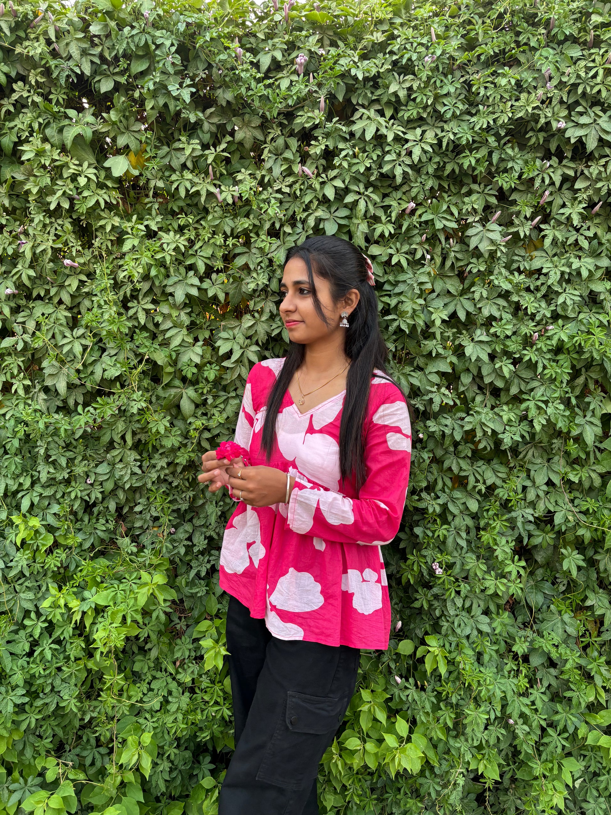 SIVOYA Blush Bloom Handcrafted Cotton Kurti - Playful Prints in Rose Pink